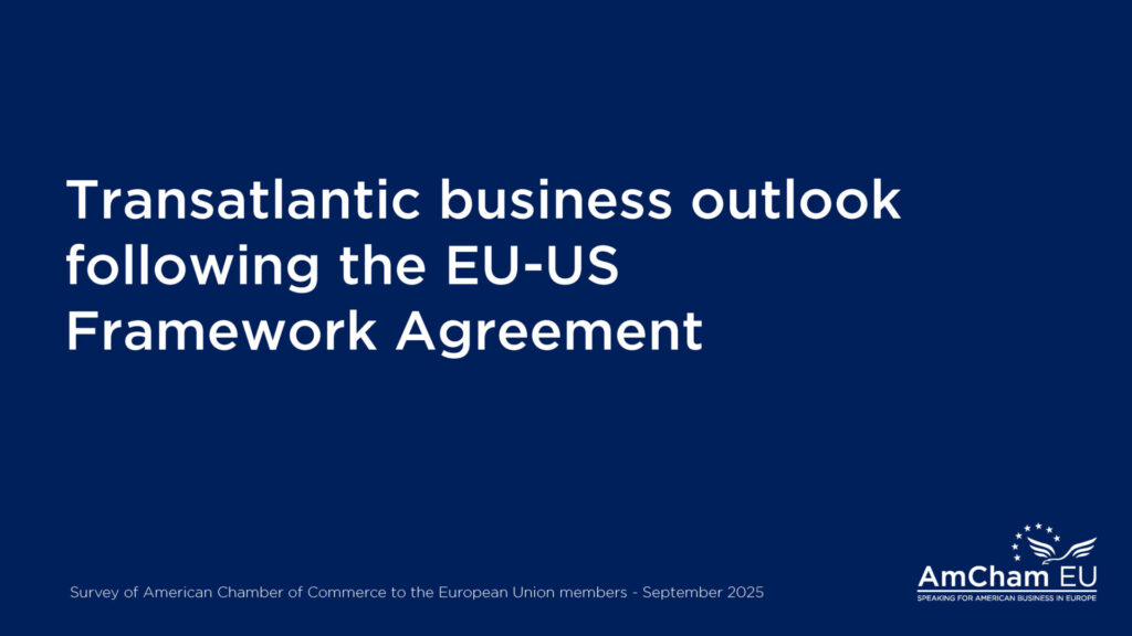 The EU-US Framework Agreement has helped stabilise the business outlook for transatlantic trade and investment despite lingering pessimism, a new AmCham EU survey shows.