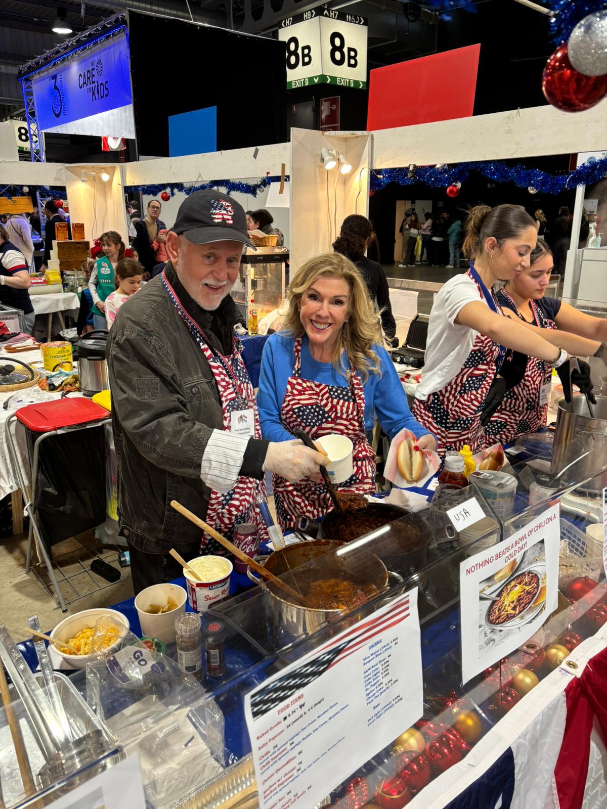Also over the weekend, I was pleased to spend four hours working with Ambassador Feinberg, selling and serving Chili at the American stand of the Bazar International.